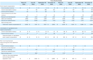 *Stock-based compensation, amortization of capitalized stock-based compensation, and non-recurring restructuring and other employee separation costs were recorded in the condensed consolidated statements of operations and comprehensive loss (income) as follows. Prior period amounts are being shown for comparative purposes: